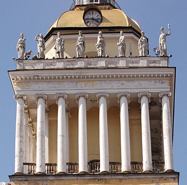 Вообще если задастся вопросом «На каком здании города самое большое число скульптур античных мифологических персонажей и аллегорий?» Ответ придет сразу — это, конечно главная башня Адмиралтейства.
