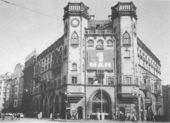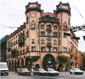 Здесь расположилось здание, построенное в 1913-1917 гг. Строил его владелец, инженер К. И. Розенштейн и приглашенный позднее архитектор А. Е. Белогруд.