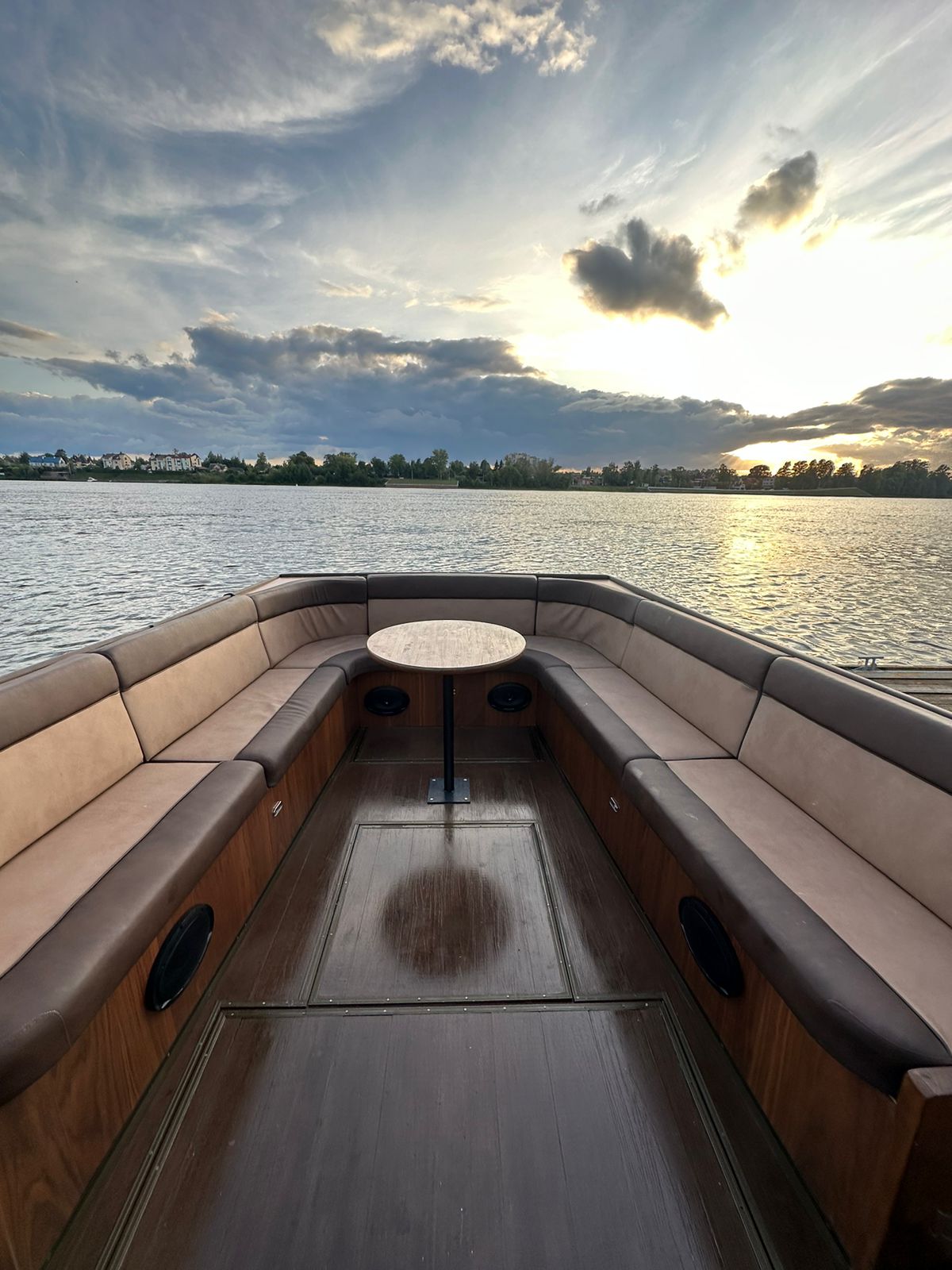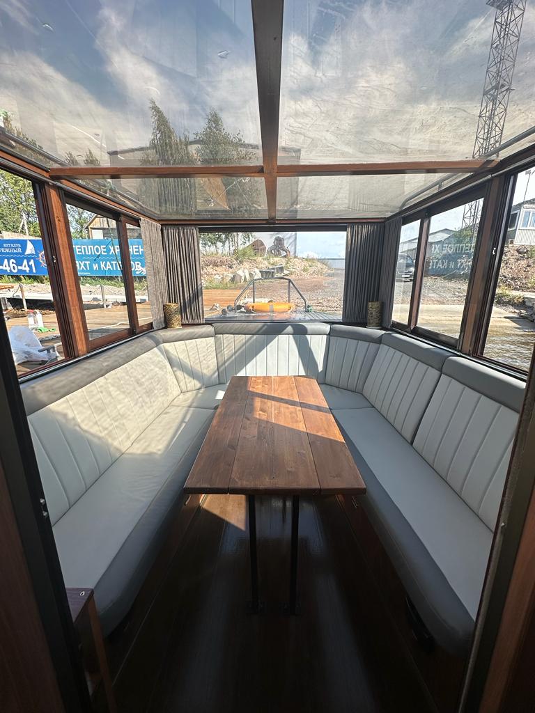 Чистый, удобный, небольшой речной трамвайчик на теплую компанию. Идеально для Праздника, Дня Рождения или Юбилея! Открытая и закрытая зона со столами и удобным расположением сидений вокруг. Есть туалет. Закрытая зона полностью и окна и потолок прозрачные. Окна можно раздвинуть. Проход закрывается прозрачной дверью. Очень удобно! Мы брали на 2 часа чтобы отметить День Рождения и времени хватило на покушать и пофоткаться и полюбоваться прекрасным Парадным Санкт- Петербургом. На любую погоду