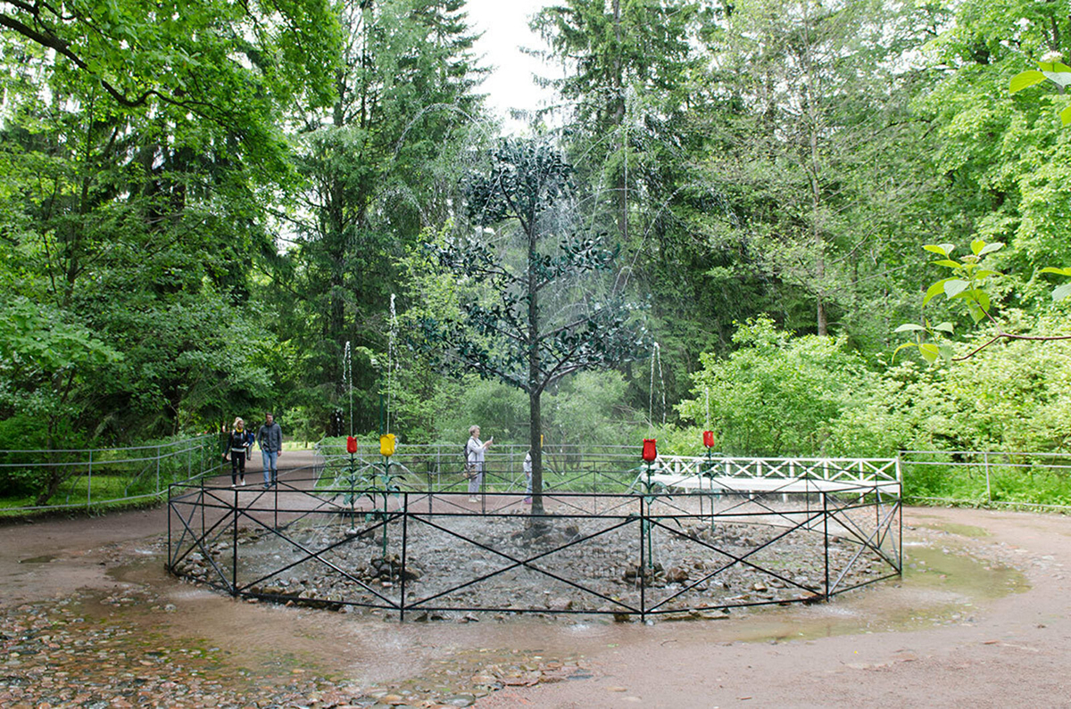 - Дубок. Создан в эпоху Анны Иоанновны. Выглядит как небольшой металлический дубок. Когда гости императрицы подходили к фонтану, в него подавали воду.