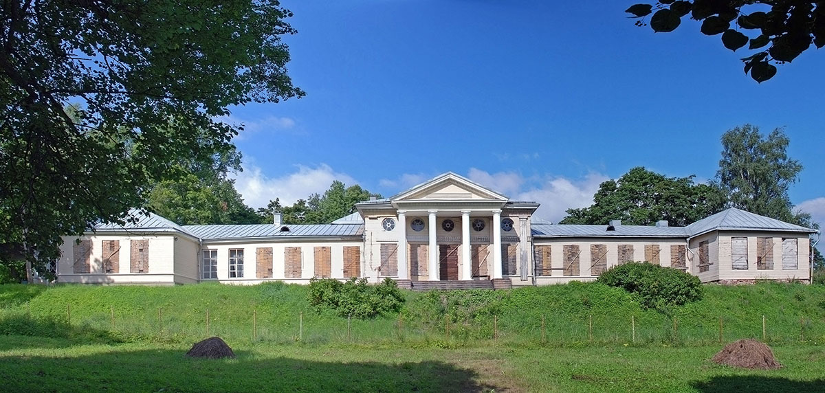 Господский дом середины XVIII века в 1804 году был перестроен и значительно расширен в стиле позднего Возрождения на небольшом искусственном холме, позволившем выровнять территорию. Главными помещениями стали Белая гостиная, Царская комната с портретами благодетелей и Большая (бальная) зала. Античный портик с четырьмя колоннами появился примерно на 20 лет позднее.