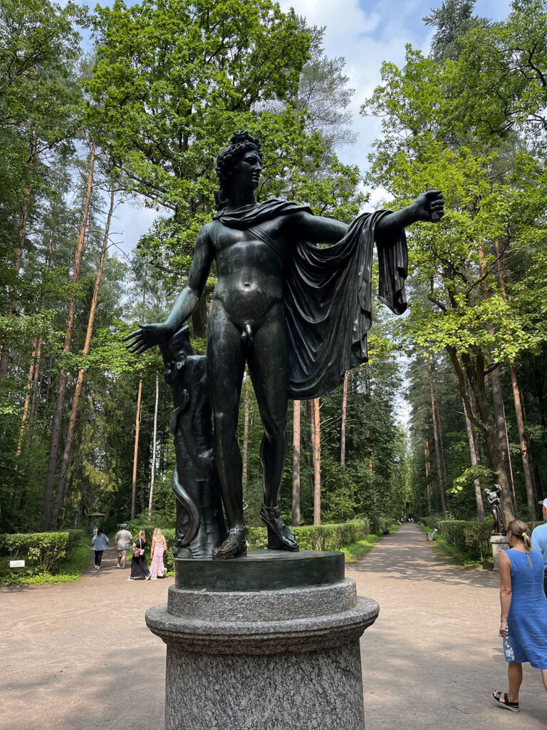Представляет собой статую древнегреческого бога красоты и искусств, окруженную полукруглым портиком из 12 пар строгих дорических колонн. Ансамбль расположен в живописном месте: он находится на возвышенности среди деревьев, а вниз от него спускается как бы река из камней. Как и дворец, композиция создана Ч. Камероном.