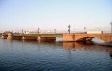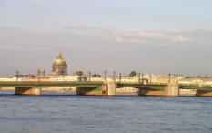 Это мост во многом первый. Первый построенный постоянный мост через реку Неву. Построен он был в 1842 — 1850годах по проекту инженера С.В. Кербедза (архитектурное оформление архитектора А.П. Брюллова). Это был 8-пролетный чугунно-арочный мост длиной 300 и шириной 20 метров.На тот момент это был самый протяженный мост в Европе. Семь пролетов перекрывались пологими чугунными арками, а восьмой, расположенный у правого берега, был разводным. Стыки между чугунными блоками были заполнены прокладками из свинца. Размеры мостовых пролетов постепенно нарастали от берегов к середине реки. Масса всех металлических конструкций составляла ни много ни мало 95000 тонн.