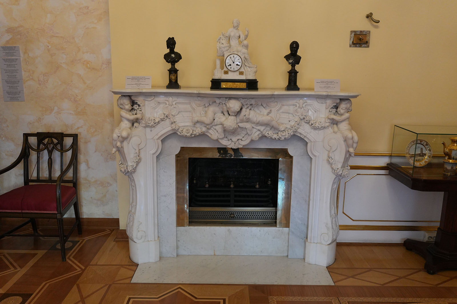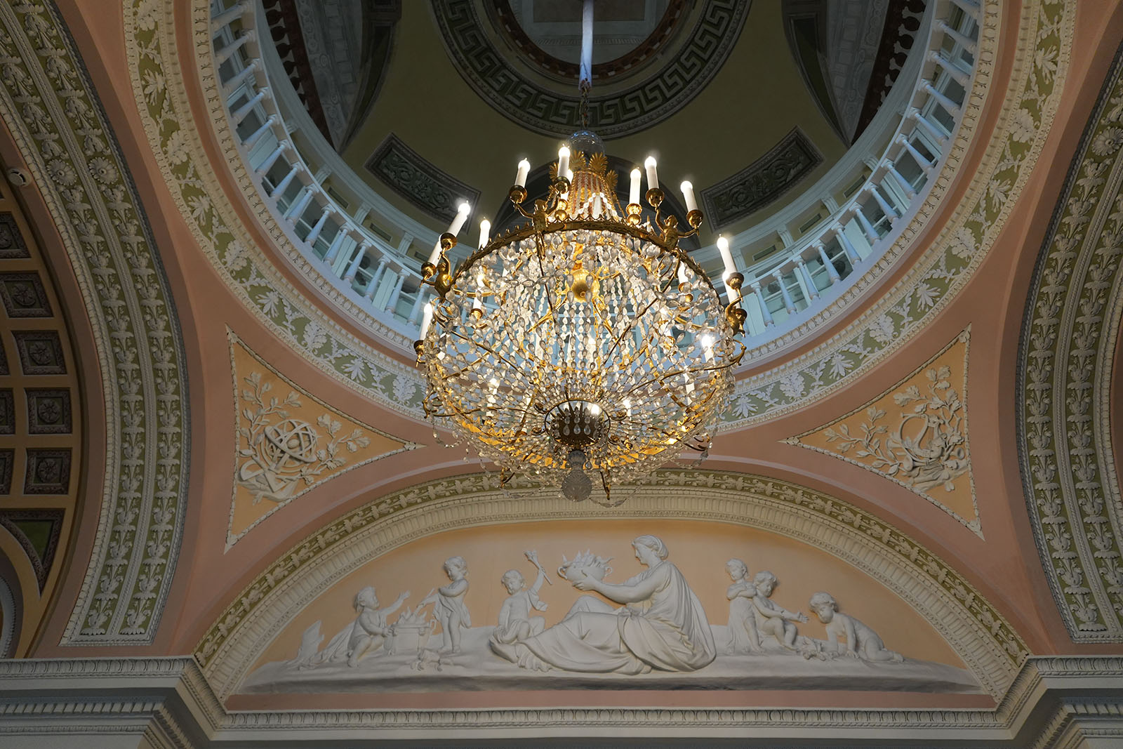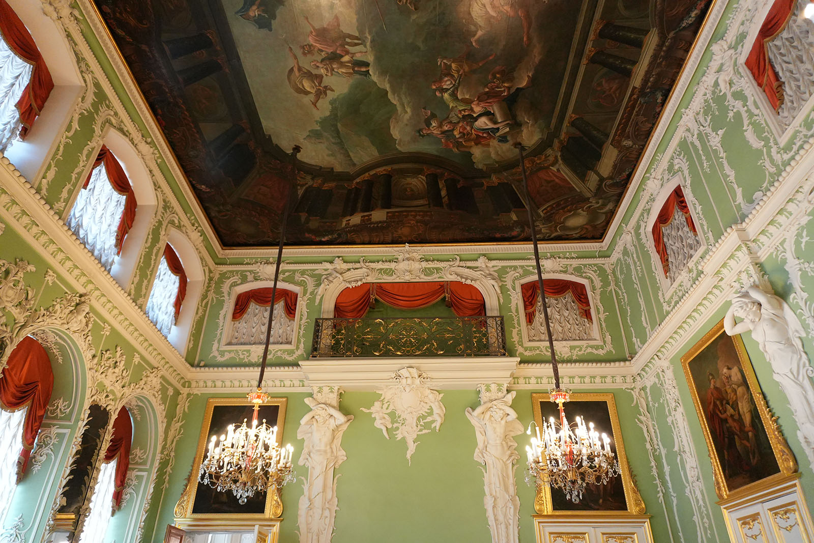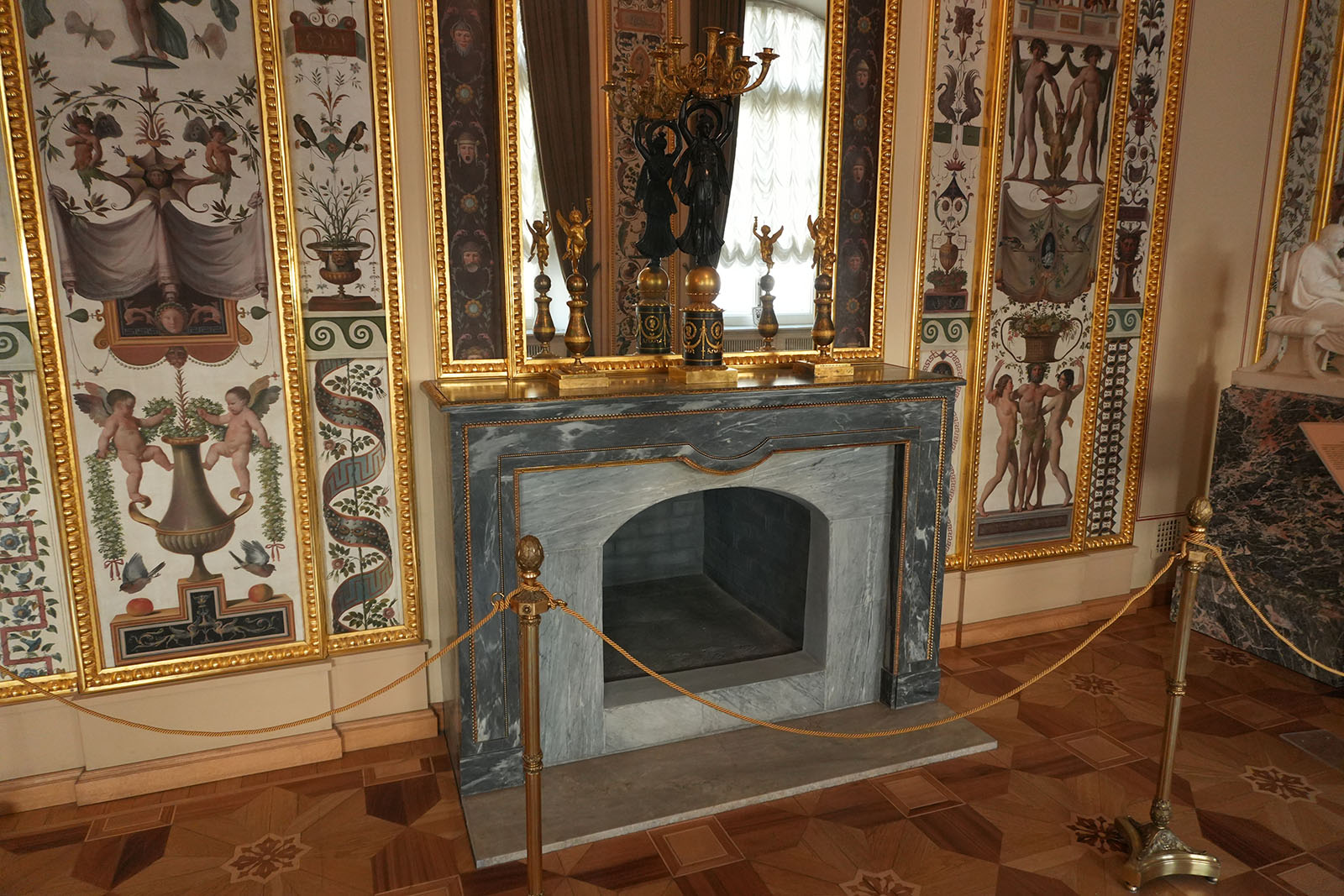Зал украшен копиями фресок Рафаэля. В то время роспись по мотивам Ватиканского дворца была очень популярна. Итальянские живописцы изобразили рафаэлевские лоджии. Дополняют фрески декоративные композиции сюжеты виллы Цицерона – помпеянская живопись. В гостиной есть две скульптуры: сидящие философы в античных одеждах.
