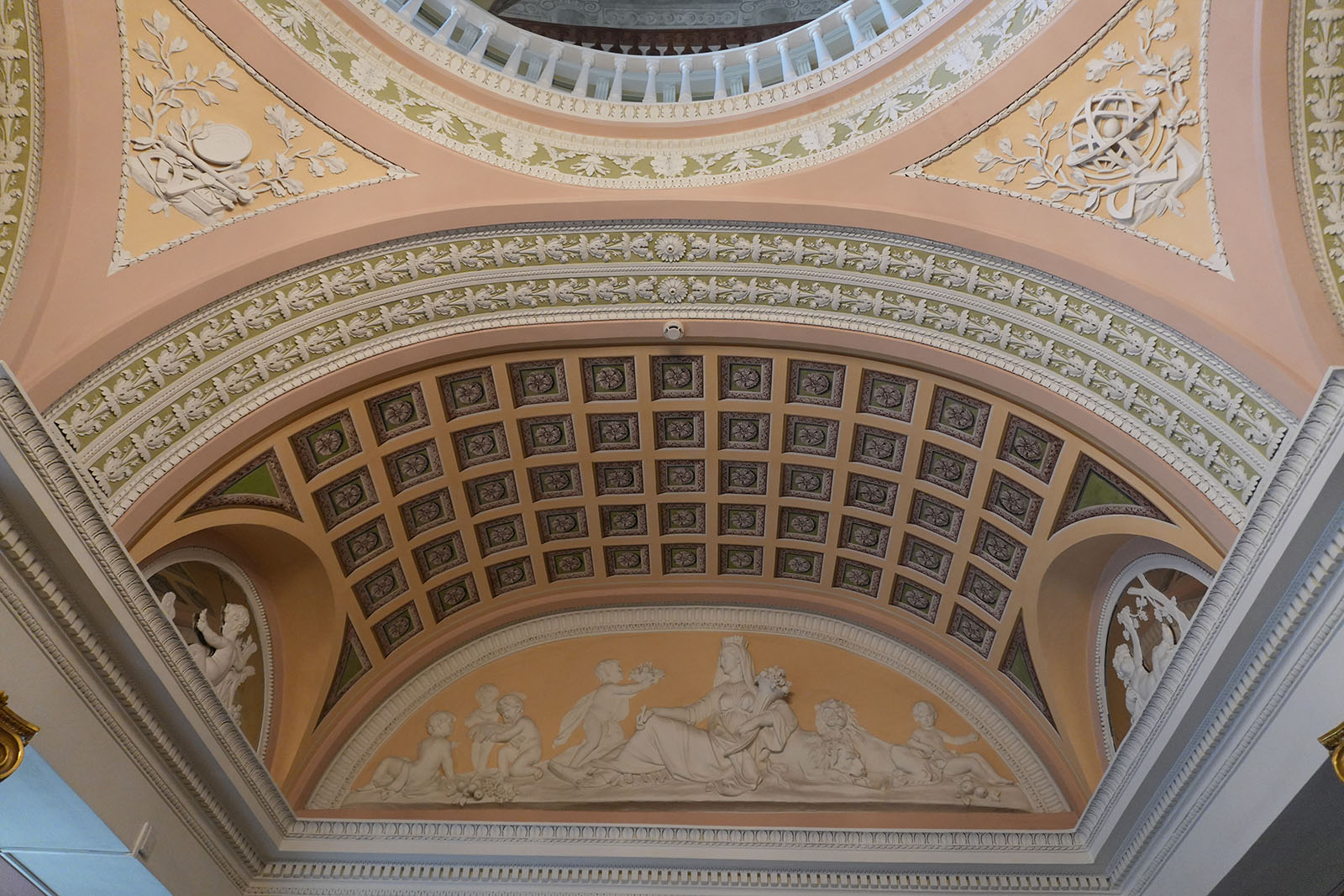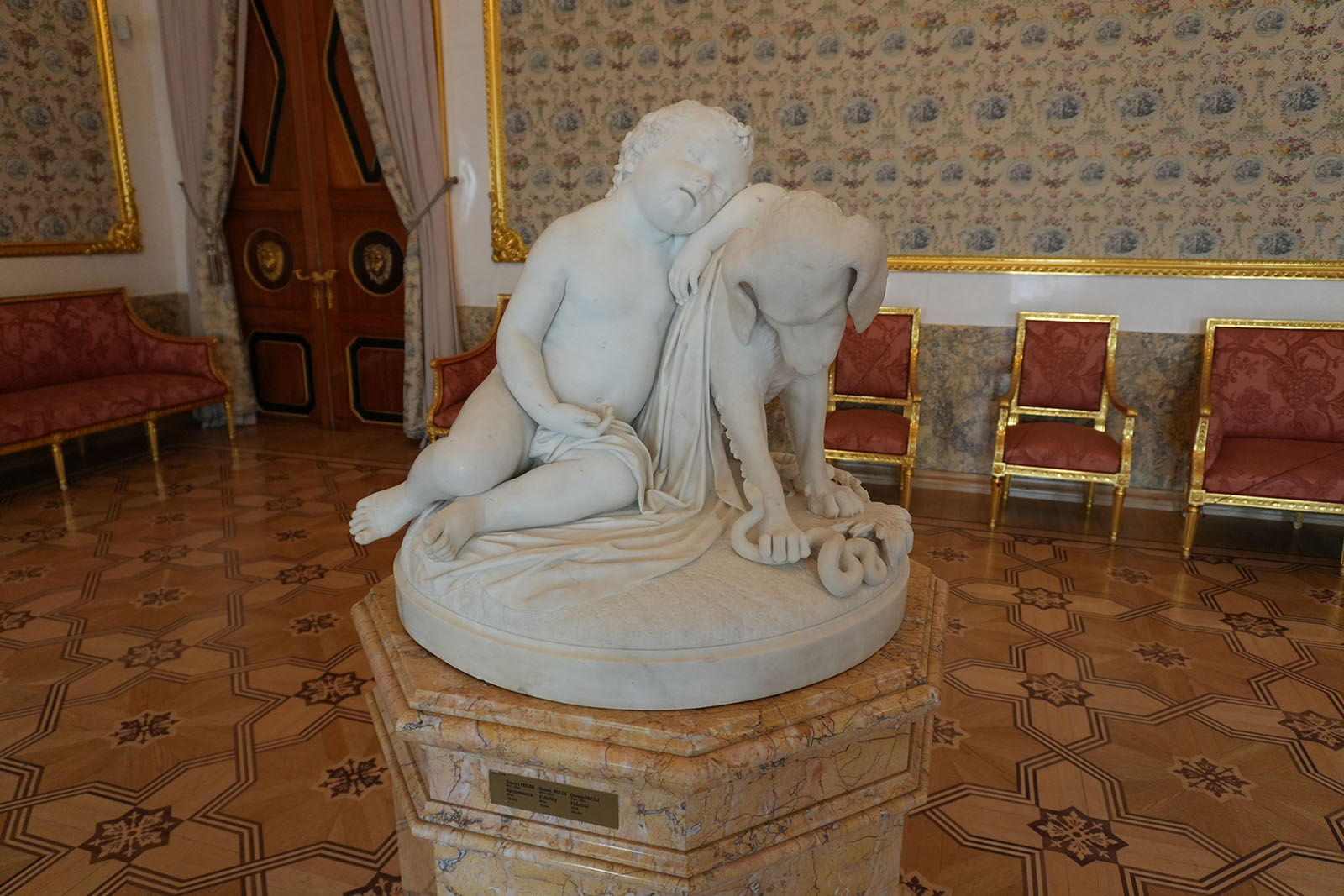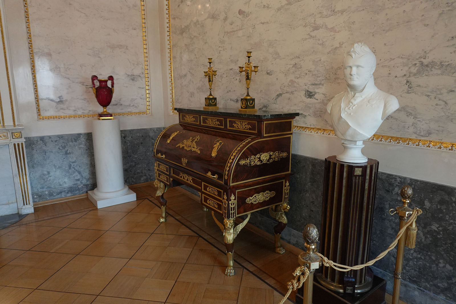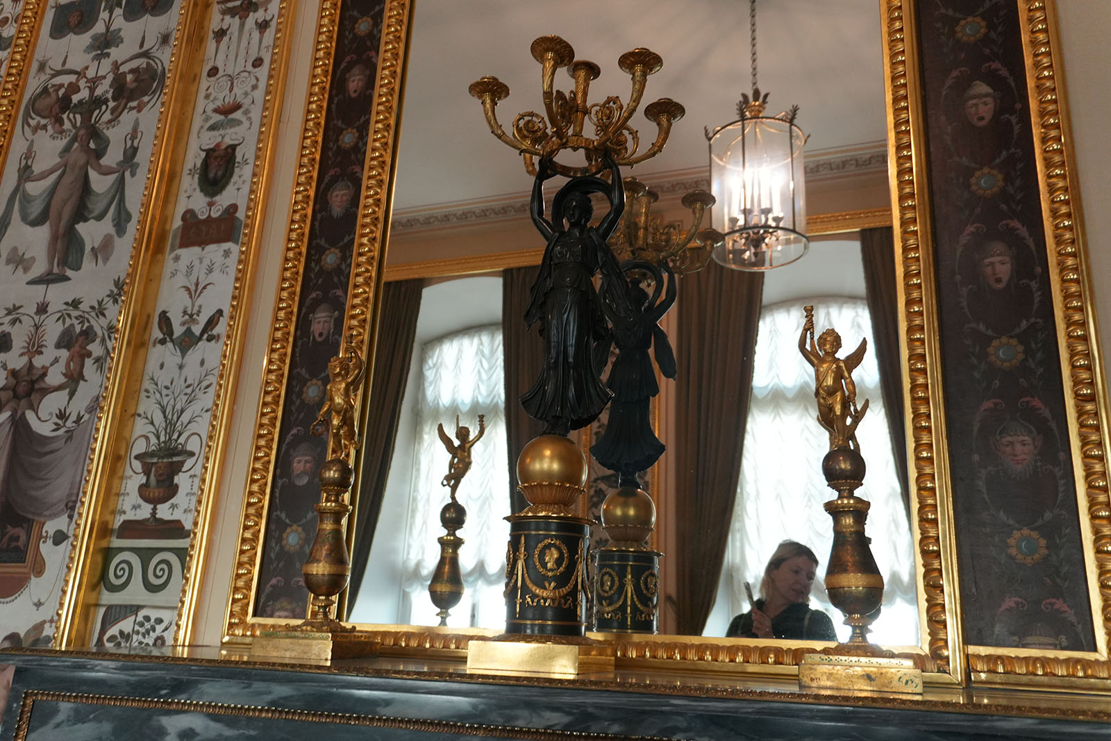 Зал украшен копиями фресок Рафаэля. В то время роспись по мотивам Ватиканского дворца была очень популярна. Итальянские живописцы изобразили рафаэлевские лоджии. Дополняют фрески декоративные композиции сюжеты виллы Цицерона – помпеянская живопись. В гостиной есть две скульптуры: сидящие философы в античных одеждах.