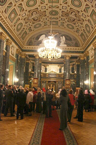 Интерьеры православной церкви более скромны, но и она, украшенная синим и желтым мрамором, тонкой лепниной на стенах, также прекрасна. Оба здания принадлежат к числу лучших образцов русского классицизма.