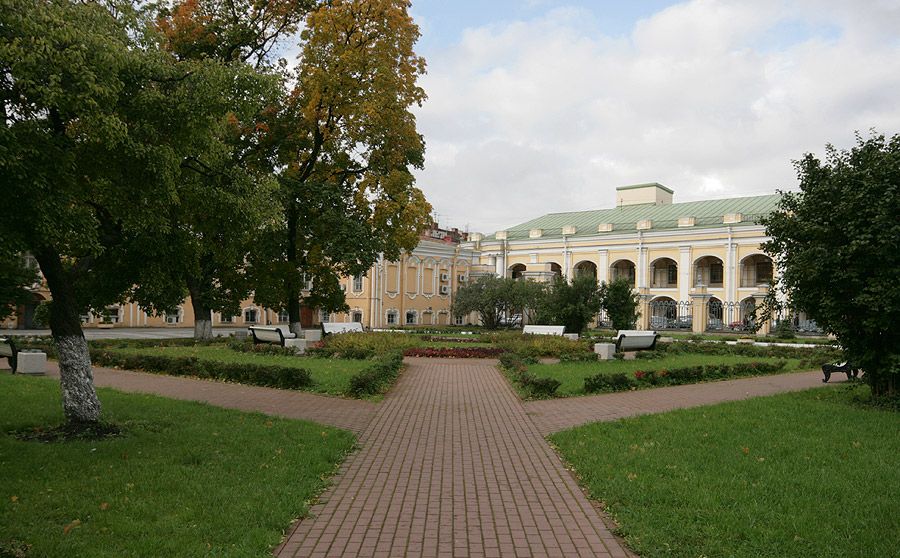 участке, расположенном между Фонтанкой и недавно проложенной Садовой улицей, которая очень скоро стала одной из оживленных улиц города. Именно к ней и обращено своим главным фасадом здание, поставленное в глубине парадного двора. От улицы двор отсечен ажурной чугунной оградой, отлитой по рисунку Растрелли.